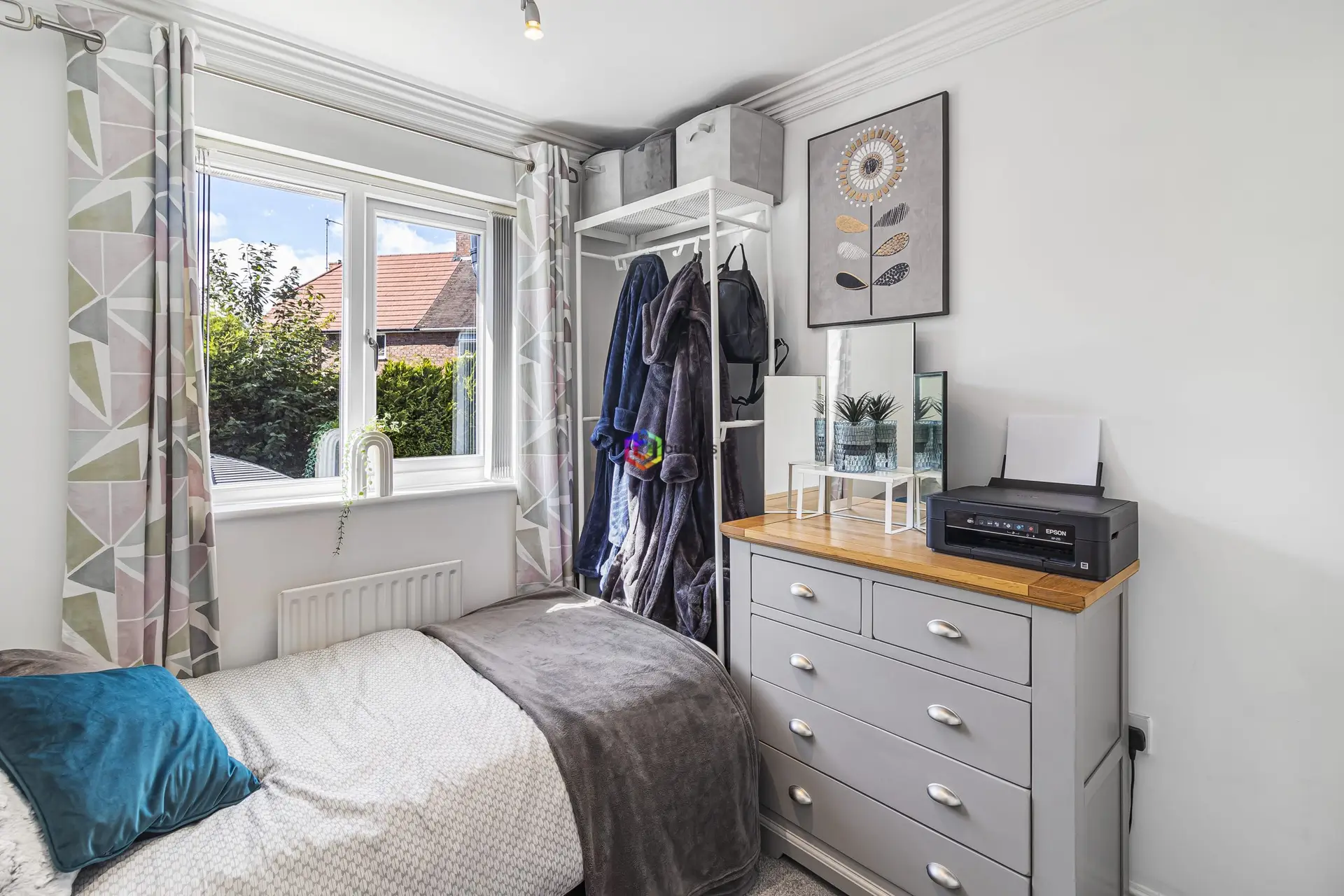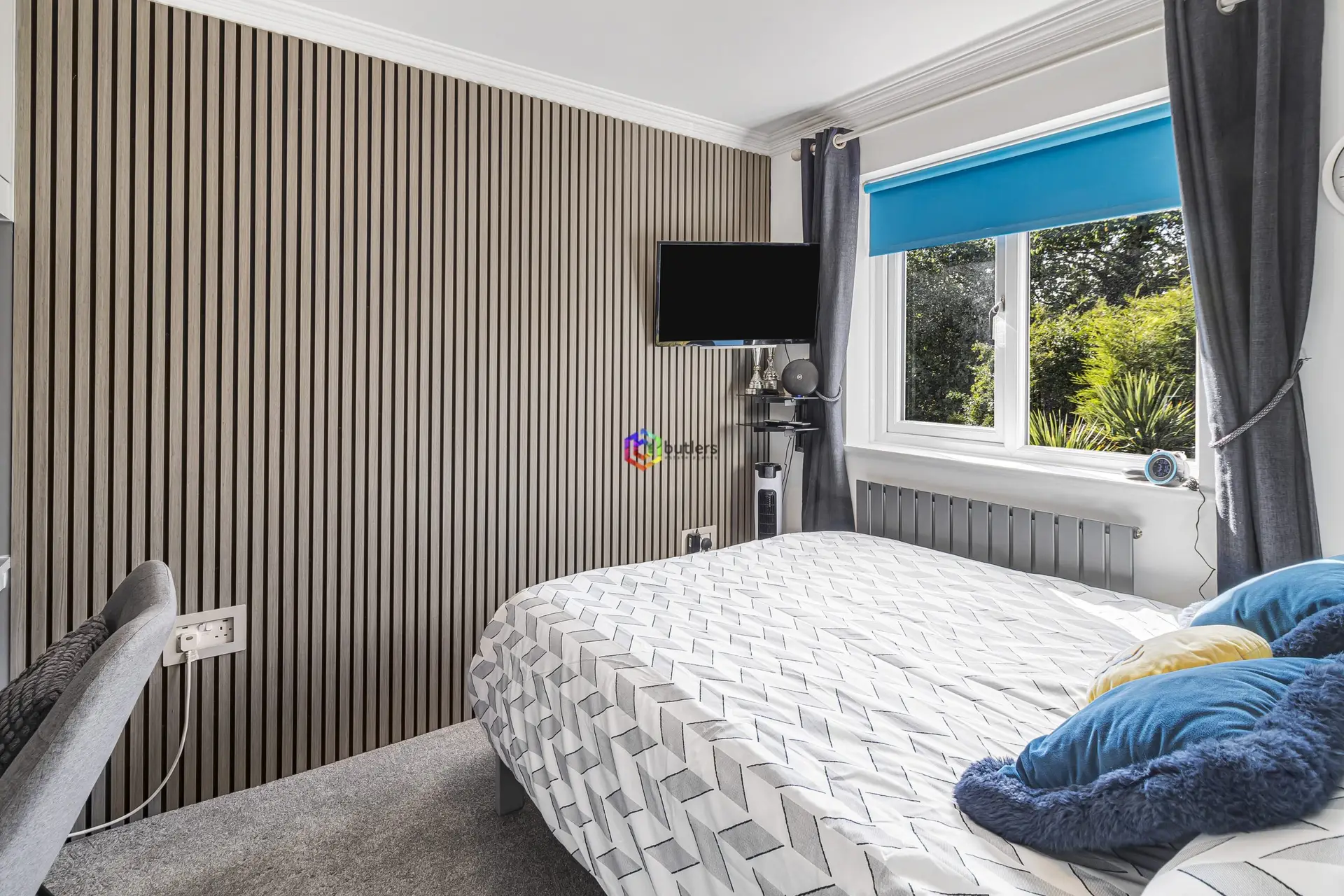 A double bedroom with modern slatted timber panelling to offer a super design for the teenagers requiring more. There is a window to the rear.