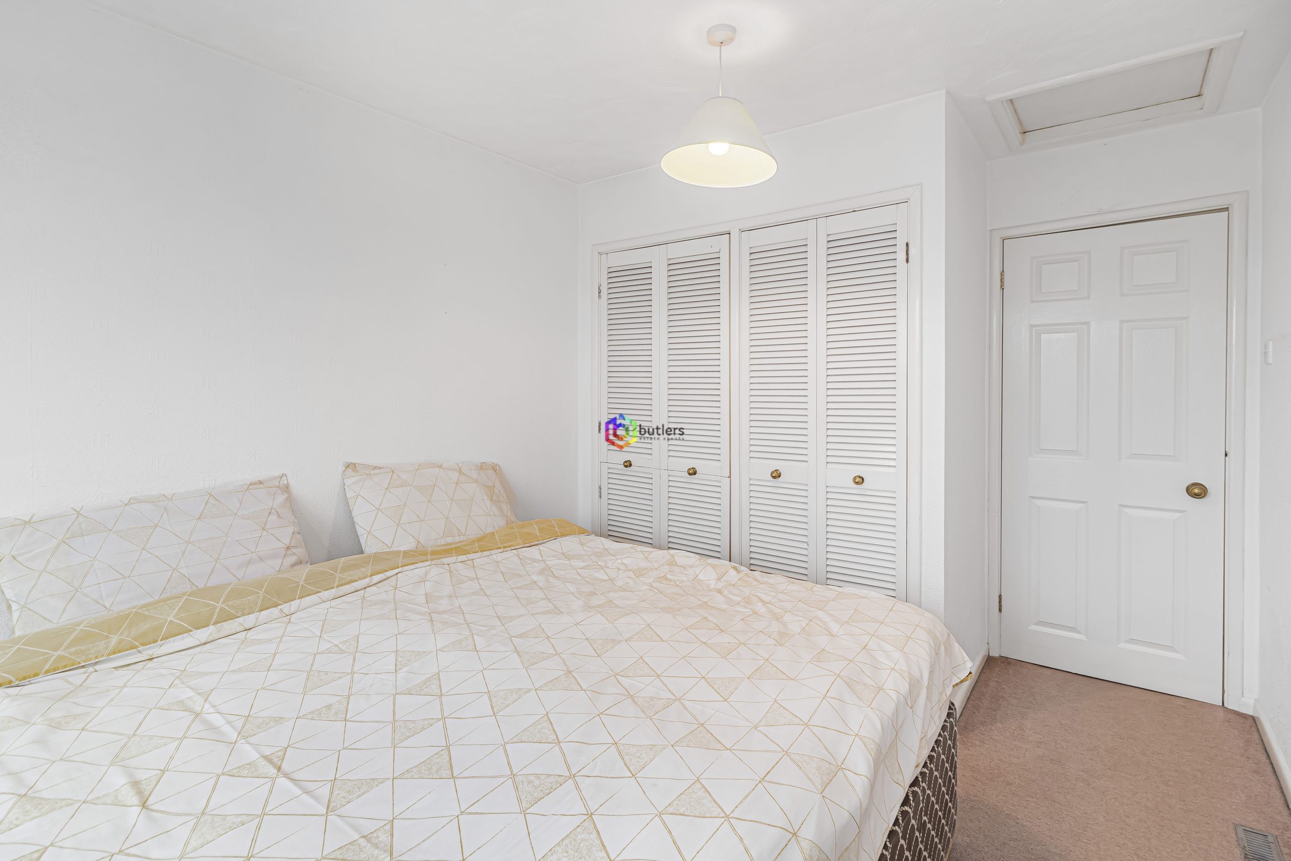 A double bedroom at the rear of the house with fitted wardrobes.